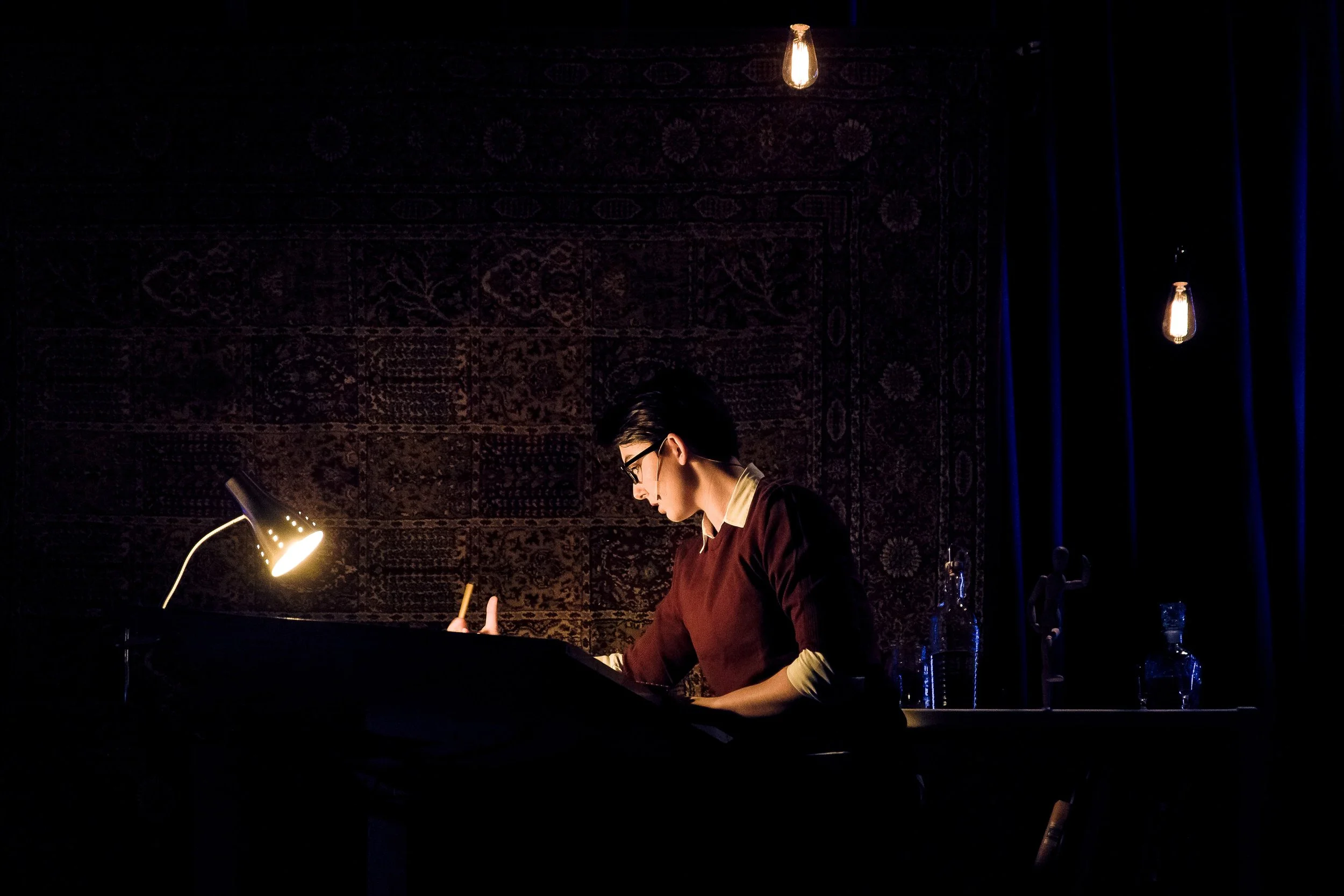 She also meets the challenge of multiple locations and scene changes on a stage somewhat smaller than ideal for this particular piece. She nails it; keeping things moving and interesting.”